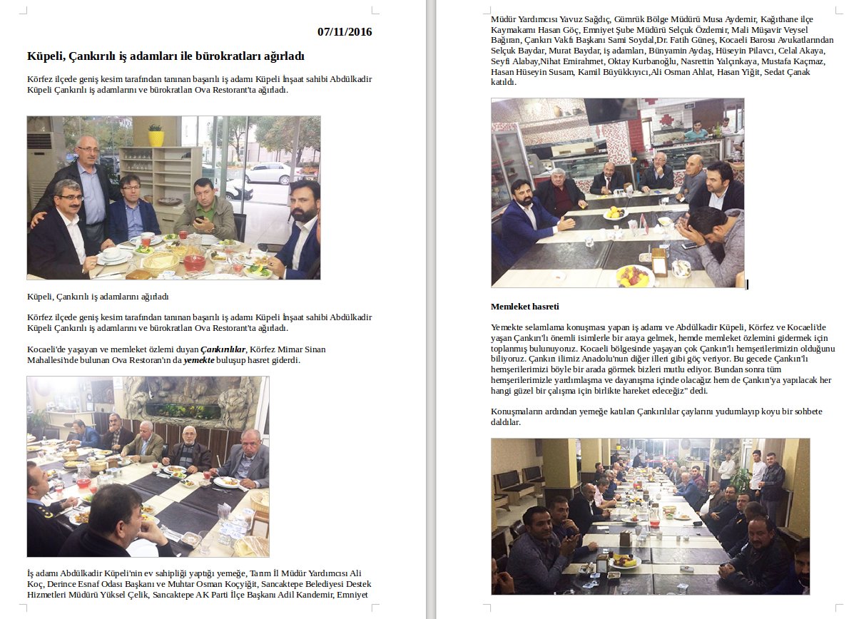 Küpeli, Çankırılı iş adamları ile bürokratları ağırladı (Körfez Manşet, 07.11.2016)